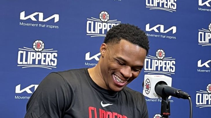 ראסל ווסטברוק הוצג הלילה (בין רביעי לחמישי) כשחקן לוס אנג'לס קליפרס, עם חיוך מאוזן לאוזן. אחרי תקופה קשה מאוד בלוס אנג'לס לייקרס, חצה הרכז את הכביש ומצא קבוצה ששמחה לקבל אותו, כולל חברו מאוקלהומה סיטי לשעבר פול ג'ורג'.