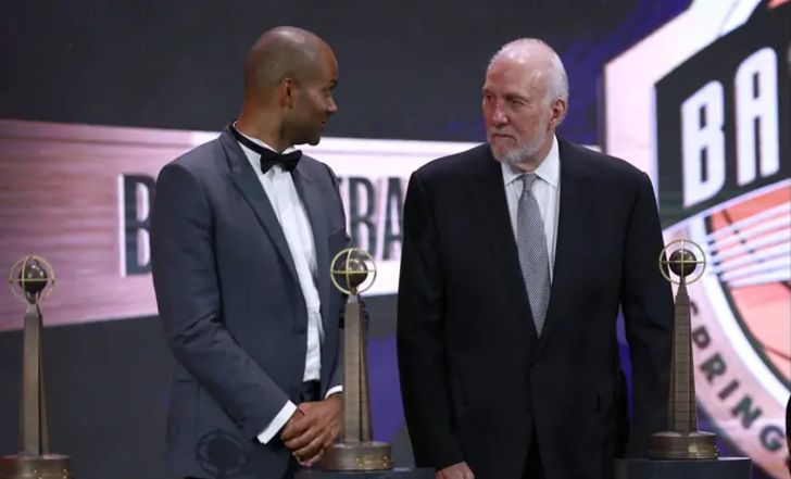 פופוביץ', המאמן שמחזיק בשיא הניצחונות אי פעם בעונה הרגילה, הודה בראש ובראשונה לשחקנים הבולטים ששיחקו תחתיו לאורך השנים, כשלצידו יושבים טים דאנקן, מאנו ג'ינובילי וטוני פארקר. "כל הניצחונות הגדולים וההפסדים הקשים נשכחים בסוף. מה שנשאר הן מערכות היחסים שהולכות איתך לכל החיים", אמר פופוביץ' בהתרגשות. פופוביץ' סיפר על מערכת היחסים המיוחדת עם טוני פארקר, עוד חבר חדש בהיכל התהילה, ואמר ש"בתחילת הדרך הייתי קשוח איתו מאוד. אם זה היה קורה היום, הייתי מוצא את עצמי מהר מאוד באזיקים, ומאחורי סורג ובריח. אבל הוא איפשר לי לאמן אותו, ולהפוך אותו לרכז המושלם".