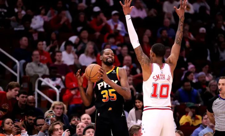 הלחץ בפיניקס הלך וגבר אחרי שלושה הפסדים רצופים, אז קווין דוראנט לקח אחריות, סיפק את הטריפל דאבל ה-18 בקריירה ודאג לקצת אוויר לנשימה. רבע שני של 31:43 פחות או יותר סוגר עניין, כשהכוכב הגיע ל-27 נקודות, 10 ריבאונדים ולא פחות מ-16 אסיסטים (שיא קריירה). הוא הסתייע באריק גורדון, שהביע לפני מספר ימים תסכול על המעורבות הדלה שלו בהתקפה, והפעם סיים עם 27 נקודות (7 מ-11 ל-3). דווין בוקר הוסיף 20. אלפרון שנגון קלע 24 לרוקטס, ג'יילן גרין הוסיף 23.
