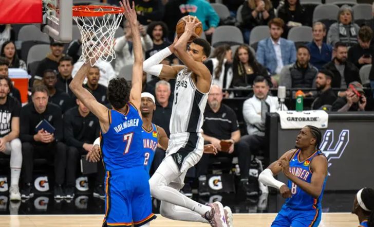 המפגש בין שני הפייבוריטים לתואר רוקי השנה הבטיח וגם קיים, ובסופו של דבר התעלה ויקטור וומבניאמה (28 נקודות, 13 ריבאונדים, 7 אסיסטים ו-5 חסימות) על צ'ט הולמגרן (23, 7 ריבאונדים ו-5 אסיסטים) גם בפן האישי, וגם בפן הקבוצתי, כשהוליך את הספרס לניצחון בלתי צפוי עם רבע אחרון של 22:34, אחרי חמישה הפסדים רצופים. 28 היו גם לדווין ואסל, ג'רמי סוהן הוסיף 21 ו-10 ריבאונדים. שיי גילג'ס אלכסנדר בלט כהרגלו עם 31 נקודות, ג'יילן וויליאמס הוסיף 26.