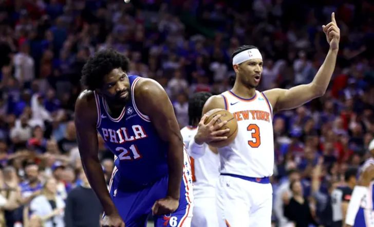 41 נקודות של הרכז סידרו לניקס ניצחון 115:118 בפילדלפיה, שהשלים 2:4 בסדרה. אמביד להט במשך שלושה רבעים וסיים עם 39, אבל שוב מודח בשלב מוקדם
