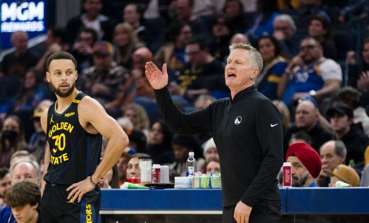 מאמן גולדן סטייט ווריירס סטיב קר לצד סטפן קרי | רויטרס