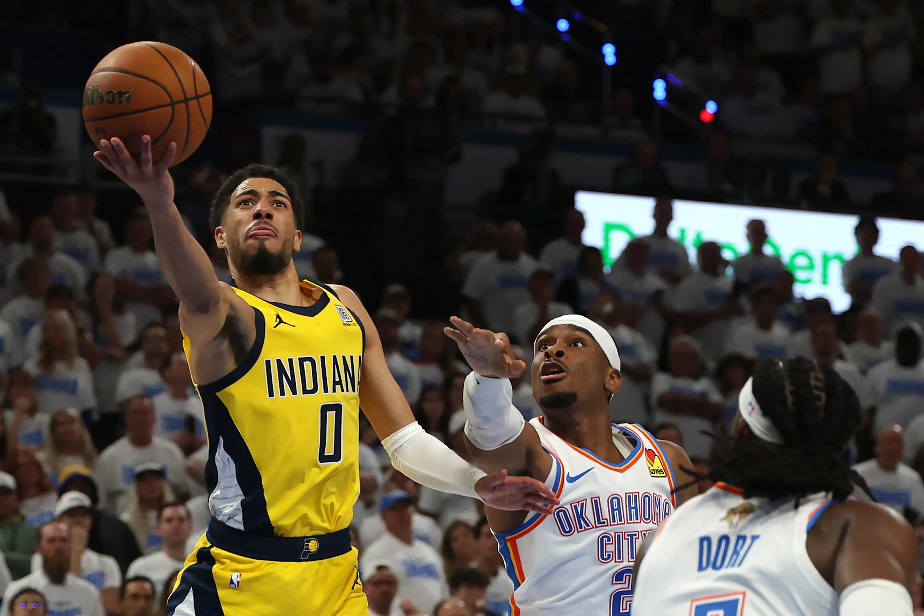 טייריס הליברטון, אינדיאנה פייסרס, מול שיי גילג'ס אלכסנדר, אוקלהומה סיטי ת'אנדר | GettyImages, Matthew Stockman