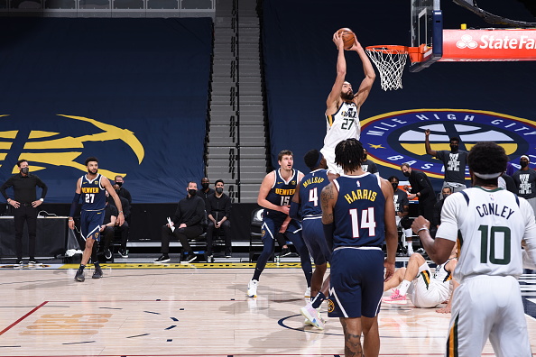 בפלייאוף האחרון השתיים האלה נפגשו לסיבוב אדיר שהסתיים ב-3:4 מטורף לזכות דנבר. הפעם? הג'אז שוב התקשו, אבל התעלו והשיגו את ניצחונם החמישי ברציפות העונה. דונובן מיטשל אמנם קלע 18 נקודות בלבד (7 מ-20 מהשדה, 7 אסיסטים), אבל ג'ורדן קלארקסון תרם 23 נקודות מהספסל (4 מ-8 מחוץ לקשת) ושלושה שחקני חמישייה נוספים קלעו בספרות כפולות – 17 קלע בוגדן בוגדנוביץ', 15 הוסיף רודי גובר (גם 13 ריבאונדים) ו-14 קלע מייק קונלי. מנגד, ניקולה יוקיץ' קלע 35, קטף 14 כדורים חוזרים והיה חסר לו אסיסט לטריפל דאבל ו-30 נקודות קלע ג'מאל מארי, אבל מלבדם הנאגטס כמעט שלא תפקדו (רק 40 אחוז מהשדה) וירדו למאזן 7:6.