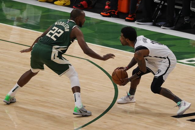 במצב של 80:80, דקה ו-23 שניות לסיום, קווין דוראנט קלע שלשה והעניק יתרון לברוקלין. מידלטון צימק ל-83:82, ו-11 שניות לסיום ג'רו הולידיי במהלך ענק סיפק סל ניצחון גדול וקבע 83:84. לאחר מכן מידלטון הוסיף שתי נקודות מהעונשין וקבע את תוצאת המשחק. מידלטון סיים עם 35 נקודות ו-15 ריבאונדים, יאניס הוסיף 33 נק' ו-14 ריב'. אצל המפסידה, דוראנט קלע 30 נק' וקטף 11 ריב', קיירי אירווינג סיים עם 22 נק'.