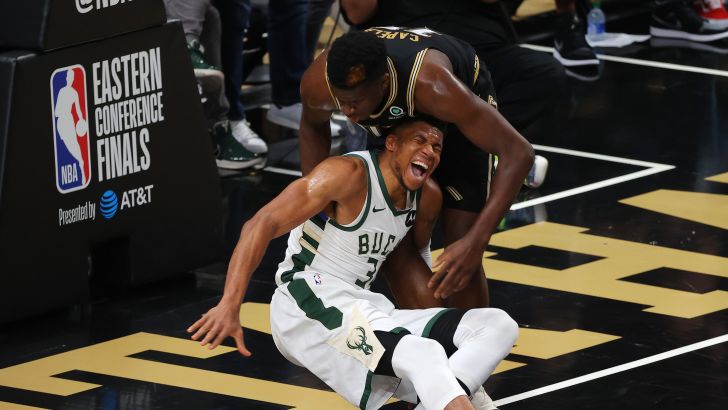 אנטטוקומפו נפגע אמנם כשקבוצתו פיגרה 62:52 כשנותרו שבע דקות לסיום הרבע השלישי, אבל בלעדיו הקבוצה קלעה עוד 10 נקודות בלבד עד סוף הרבע לעומת 25 של אטלנטה, מה שהעיד על הפערים העצומים ביכולת הבאקס עם ה"גריק פריק" ובלעדיו. הוא נפצע בניסיון לחסום את קלינט קאפלה שהסתיים בנחיתה לא טובה על רגלו השמאלית ובשלב זה כמובן שלא ידועה חומרת הפגיעה ואם הוא יוכל לשוב להמשך הסדרה.
