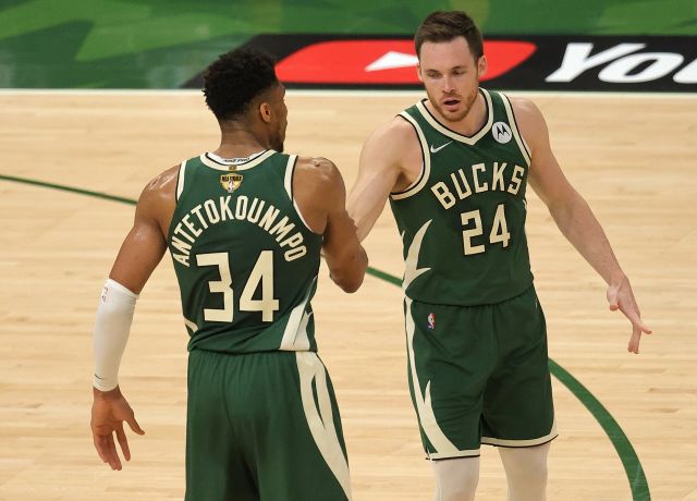 אנטטוקומפו, שסיים את המשחק הקודם עם 42 נקודות ו-12 ריבאונדים, שוב סיפק מספרים דומים ורשם הפעם 41 ו-13 בהתאמה, כאשר מקו העונשין הוא דייק באחוזים גבוהים הרבה יותר (76.4%) ונהנה מהיכולת לעמוד על הקו בלי שעשרות אלפי אוהדים יספרו לו בקול מאחת עד עשר, בדרך ל-13/17 בזריקות עונשין. ג'רו הולידיי סייע ליווני עם 21 נקודות ו-9 אסיסטים, כריס מידלטון הוסיף 18.
