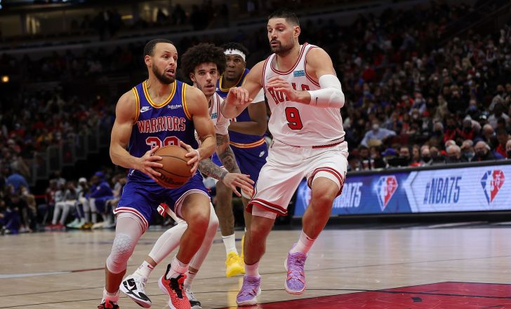 סטף קרי, גולדן סטייט ווריירס מול ניקולה ווצ'ביץ', שיקגו בולס | GettyImages, Stacy Revere