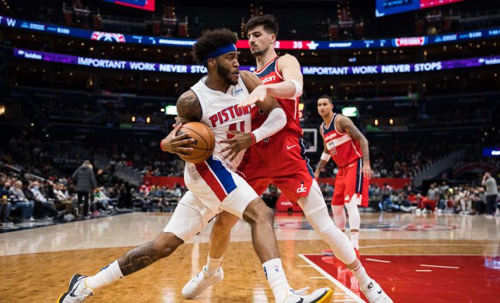 שחקן וושינגטון וויזארדס דני אבדיה שומר על שחקן דטרויט פיסטונס סאדיק ביי