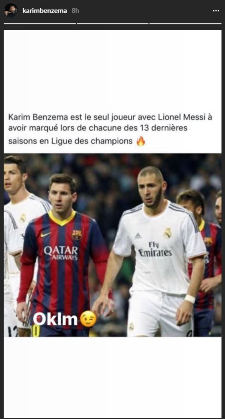 ואם כבר בנזמה, החלוץ הצרפתי שהיה מרוצה מאוד מהצמד, דאג לציין בסטורי בחשבון האינסטגרם שלו שיחד עם ליאו מסי, שניהם השחקנים היחידים שכבשו בכל 13 העונות האחרונות של ליגת האלופות. הישג אותו אפילו רונאלדו לא רשם.