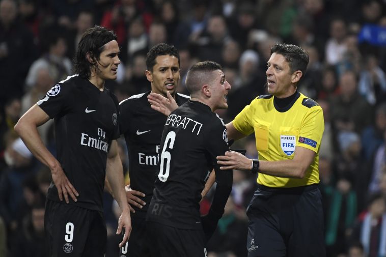 שחקני פאריס והשופט. הגיע פנדל? (AFP)