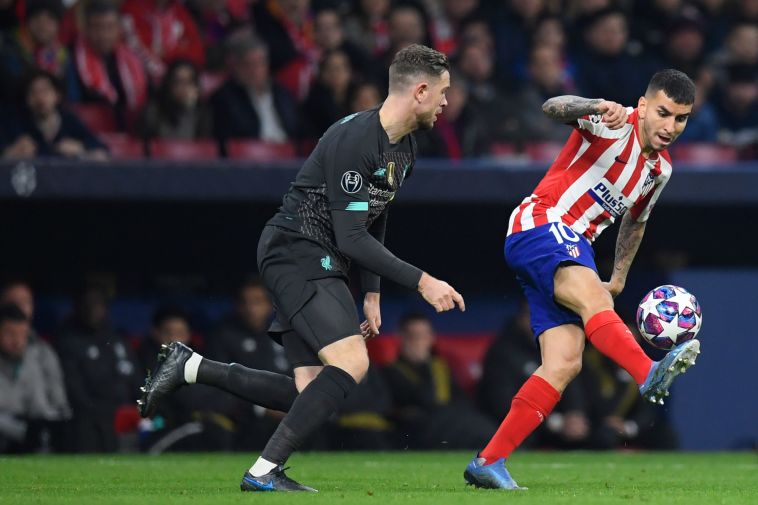 ג'ורדן הנדרסון שומר על אנחל קוראה (OSCAR DEL POZO/AFP via Getty Images)