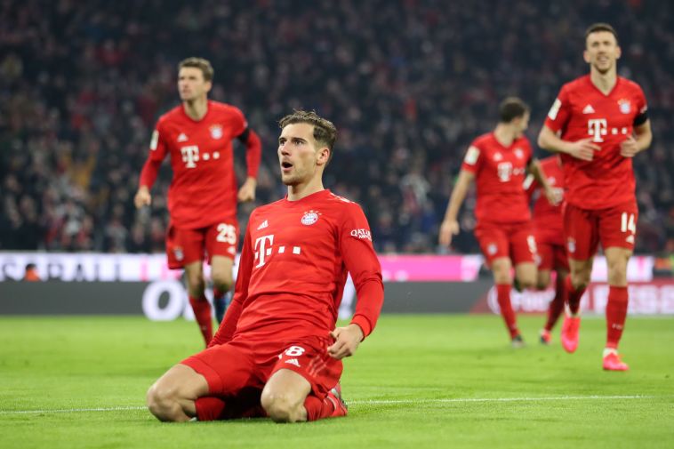 לאון גורצקה חוגג שער ענק. הצגה גדולה של באיירן (Christian Kaspar-Bartke/Bongarts/Getty Images)