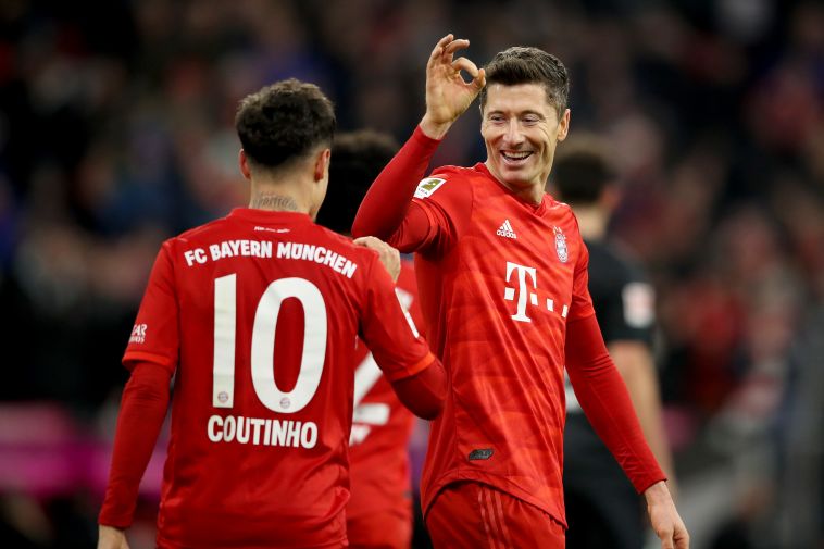 לבנדובסקי עם קוטיניו. בבאיירן רוצים לצרף כוכב שנה אחר שנה (Alexander Hassenstein/Bongarts/Getty Images)