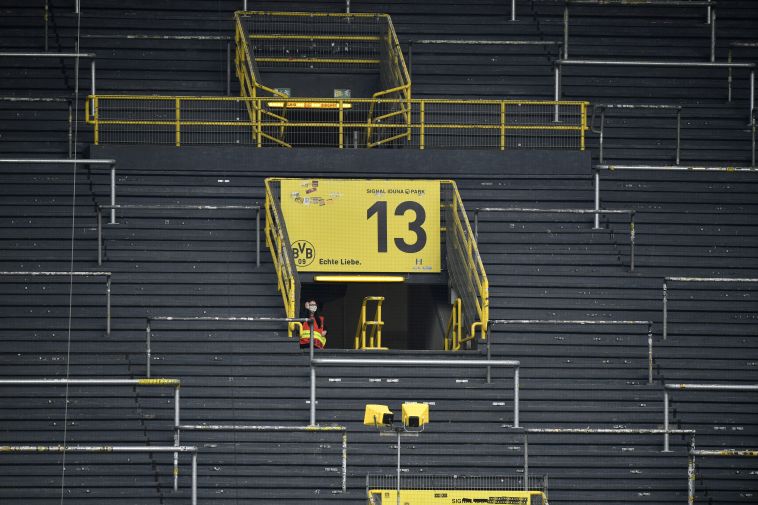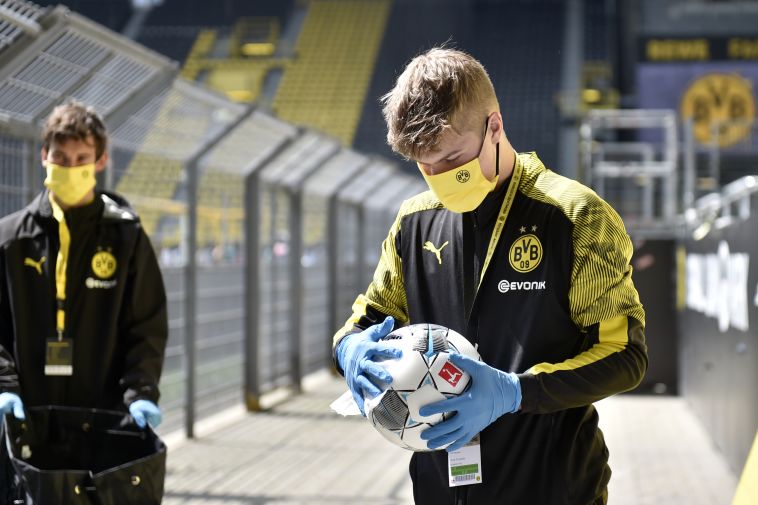 בודקים את המגרש, לא שוכחים מסיכות (JAN WOITAS/POOL/AFP via Getty Images)