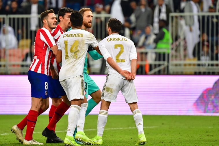 שחקני ריאל ואתלטיקו מתעמתים (GIUSEPPE CACACE/AFP via Getty Images)