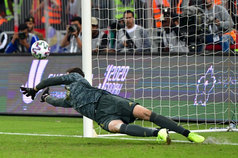 טיבו קורטואה הודף את הפנדל של תומאס פארטי (GIUSEPPE CACACE/AFP via Getty Images)