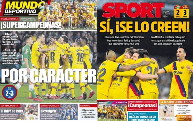 התקשורת כמובן מפרגנת. "בזה אנחנו מאמינים!", נכתב בשער "ספורט", שם נכתב על הנשמה הגדולה של השחקנים וכמובן על מסי שעשה הכל. בטור דיעה נכתב: "בארסה של קיקה סטיין היא קבוצה עם אוויר חדש, שיש לה מגבלות בהתקפה וגם הרבה כאלה בהגנה, אך הרוח השתנתה. בארסה כבר לא אדישה, יש לה נשמה, וכמובן את מסי. נראה לאן זה יביא אותנו", נכתב ב"ספורט". "ההצהרה הגדולה הראשונה של בארסה של סטיין", נכתב. "בארסה הייתה חייבת ליצור מומנטום וזה הגיע כעת עם ניצחון נהדר אחרי שנקלעה פעמיים לפיגור והתגברה על בטיס אינטנסיבית". ב"מונדו דפורטיבו" נכתב: "בזכות האופי. בארסה שמרה על ריאל מדריד קרובה אחרי מהפך גדול".