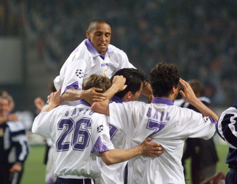 שחקני ריאל חוגגים נגד יובה ב-1998 ( PATRICK KOVARIK / AFP via Getty Images)