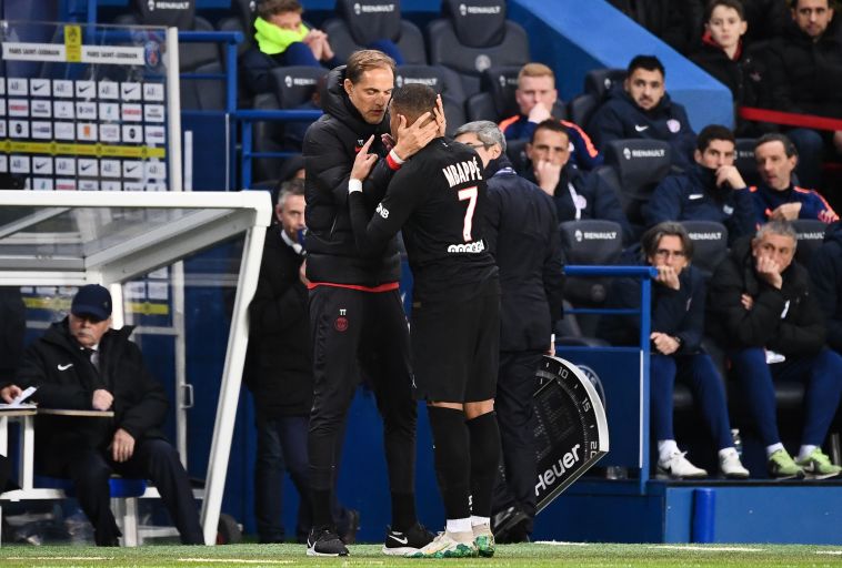 אמבפה מתעמת עם טוכל. "אני המאמן ולא הוא. אנחנו לא משחקים טניס" (FRANCK FIFE/AFP via Getty Images)