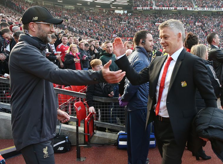 אולה גונאר סולשיאר ויורגן קלופ לפני המשחק (Gettyimages)