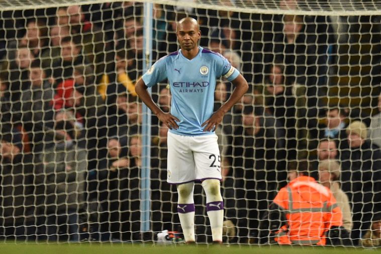 פרננדיניו מאוכזב לאחר השער העצמי (OLI SCARFF/AFP via Getty Images)