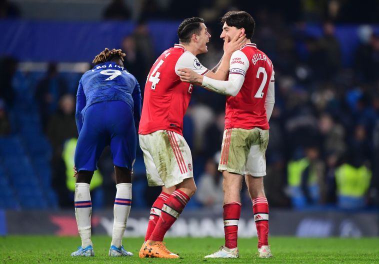 גראניט ג'אקה והקטור ביירין חוגגים את שער השוויון הדרמטי (Shaun Botterill/Getty Images)