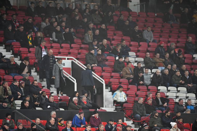 יושבי האולד טראפורד נוטשים נגד ברנלי הרבה לפני הסיום (PAUL ELLIS/AFP via Getty Images)