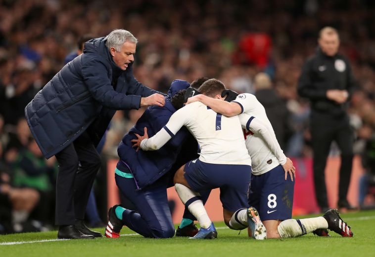 ז'וזה מוריניו חוגג עם שחקני טוטנהאם (Catherine Ivill/Getty Images)