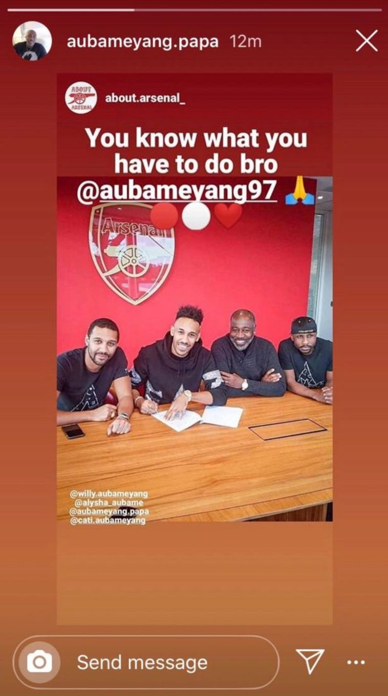 פייר פרנסואה, אביו של החלוץ, מרגיש שבנו צריך לשים בצד את כל סימני השאלה ולהאריך את חוזהו. בחשבון האינסטגרם שלו הוא פרסם סטורי עם תמונה מ-2018 כשאובמיאנג חתם על חוזה בקבוצה וכתב: "אתה יודע מה צריך לעשות".
