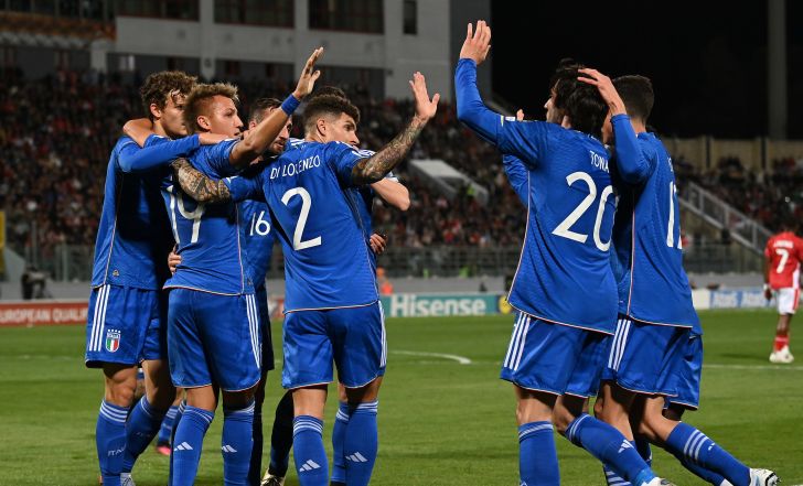 אחרי ההפסד לאנגליה במחזור הפתיחה של מוקדמות היורו, רוברטו מנצ'יני החליט לעשות שינויים, ובראשם הדחתו של ז'ורז'יניו מההרכב והצבתו של סנדרו טונאלי. ווילפריד ניונטו של לידס קיבל את המקום ב-11 יחד עם מתאו רטגי. בדקה ה-15 טונאלי מצא את הראש של רטגי בכדור קרן שהעלה את האיטלקים ליתרון. האיטלקים המשיכו בשליטה שלהם ובדקה ה-27 זה היה מתאו פסינה שדחק מקרוב אחרי מסירת רוחב של אמרסון. במחצית השנייה האזורי הורידו רגל מהגז ורשמו ניצחון ראשון בקמפיין מוקדמות היורו הנוכחי.
