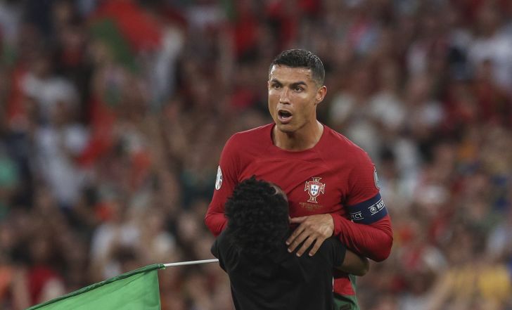 אוהד פורץ למגרש במשחק של נבחרת פורטוגל ומניף את כריסטיאנו רונאלדו
