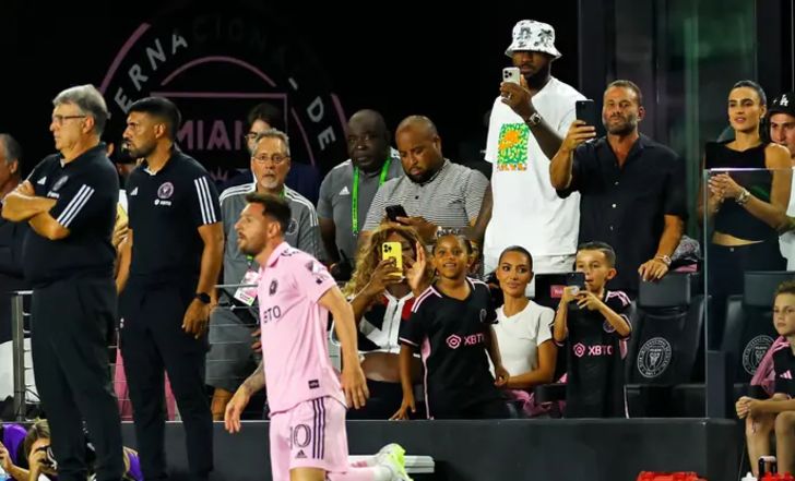 ביציע שבו ישב לברון נכחו גם סרינה וויליאמס וקים קרדשיאן, אך מי שעוד משך את תשומת הלב היה אחד מהבעלים של אינטר מיאמי, דיוויד בקהאם. כדורגלן העבר האנגלי חגג את שער הניצחון עם אשתו ויקטוריה בקהאם, וניכר כי הוא היה על סף דמעות. בסיום המשחק הוא חיבק את מסי, ואי אפשר היה לפספס את החיוך הענק שהיה מרוח על פניו.