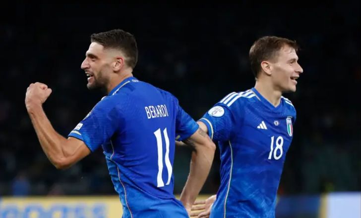 איטליה נהנתה בבארי, עברה את אוקראינה בזכות הפרש שערים עדיף וגם יש לה משחק חסר. ג'אקומו בונבנטורה בן ה-34, שחזר לנבחרת אחרי 3 שנים ורשם הופעה מספר 15, כבש את השער הראשון שלו במדי האזורי בדקה ה-23. דומניקו ברארדי הוסיף צמד (45+1, 64), דוידה פראטזי חתם (90+4) והחבורה בכחול הצליחה להשכיח את פרשת ההימורים שחלק מחברי הסגל חשודים בה.