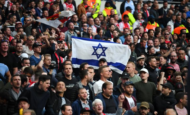 נציין בהערת אגב כי אוהדי אייאקס אמסטרדם, שלאורך עשרות שנים היו מזוהים עם דגלי ישראל ביציעים, החליטו מאז ה-7.10 שלא להניף את דגלי ישראל. הסיבה היא דגלי פלסטין שהונפו בתגובה וראשי האוהדים החליטו לשים לכך סוף בהחלטה שלא יונף אף אחד מהדגלים כדי למנוע עימותים וחיכוכים ביציעי הארנה.