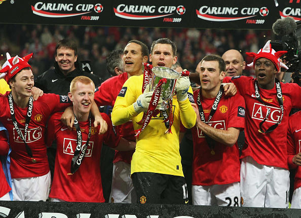 בן פוסטר עם הגביע במדי מנצ'סטר יונייטד | John Peters / Contributor
