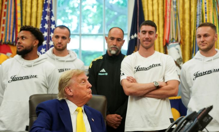 כידוע, יובנטוס האיטלקית נמצאת בארה"ב לרגל גביע העולם למועדונים, ופתחה את דרכה עם 0:5 על אל-עין מאיחוד האמירויות בוושינגטון הלילה. סגל יובנטוס, הכולל את נציגי נבחרת ארה"ב טימותי וואה ו-ווסטון מקיני, עמד מאחורי הנשיא בזמן שהוא דיבר על נושאים שונים. בשלב מסוים, טראמפ — שחתם בפברואר האחרון על צו נשיאותי האוסר על השתתפות טרנסג'נדריות בענפי ספורט לנשים — פנה אל שחקני יובנטוס והצוות בניסיון לשמוע את דעתם בנושא, כשהוא מנסה לגרור את אנשי יובנטוס לדיון על השתתפות נשים טרנסג'נדריות בספורט.