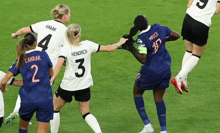מה שהוביל לכרטיס האדום היה כאשר הנדריך הורחקה לאחר בדיקת VAR – שקבעה שהיא משכה את שיערה של גריז' אמבוק באתי ברחבה, והפנדל של גרייס גיורו חדר לשער למרות שברגר נגעה בכדור ביד חזקה.