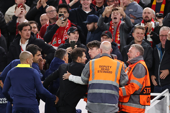 המאמן הארגנטינאי נכנס לוויכוח סוער עם מספר אוהדים מאחורי ספסל האורחים לאחר השער, מה שדרש בסופו של דבר התערבות של הסדרנים באזור. השופט החליט להרחיק את סימאונה, שלחץ את ידו לפני שירד למנהרה.