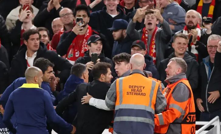 בתום המשחק באנפילד נרשמו סצנות סוערות, לאחר שאתלטיקו חזרה מפיגור 2:0, אך ספגה שער בתוספת הזמן והפסידה את המשחק. מאמן ליברפול, ארנה סלוט, אמר כי הוא לא מודע למה שהתרחש.