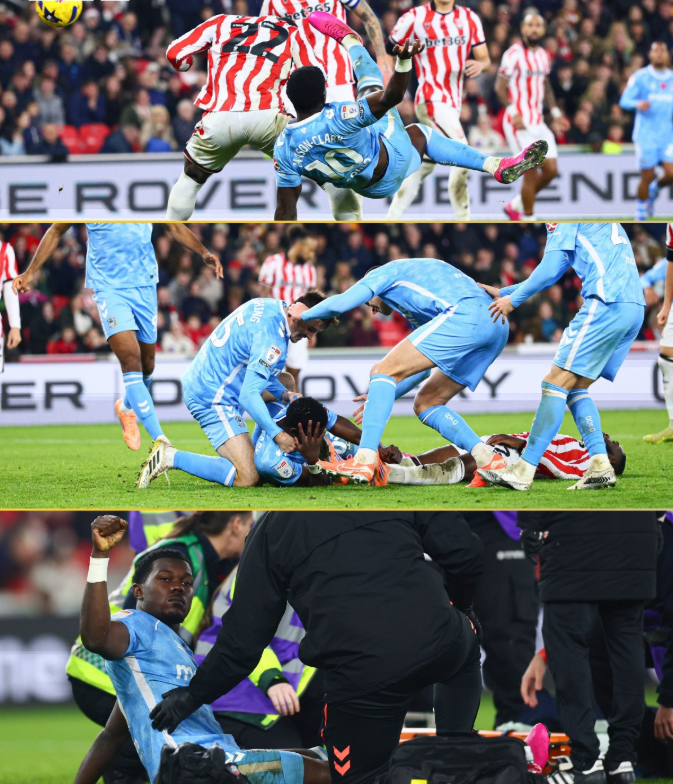כוכב קובנטרי סיטי, אפרון מייסון-קלארק, כבש שער ניצחון מרהיב בדקה ה-86 מול סטוק סיטי, אך במהלך הכיבוש ספג מכה מדאיגה בראשו. החלוץ בן ה-26 כבש במספרת אקרובטית, אך התנגש עם שחקן היריבה במגע מקרי שנראה כאילו גרם לו לאבד את ההכרה. הצוות הרפואי טיפל בו על הדשא, והוא נדרש לעזוב את המגרש על אלונקה.