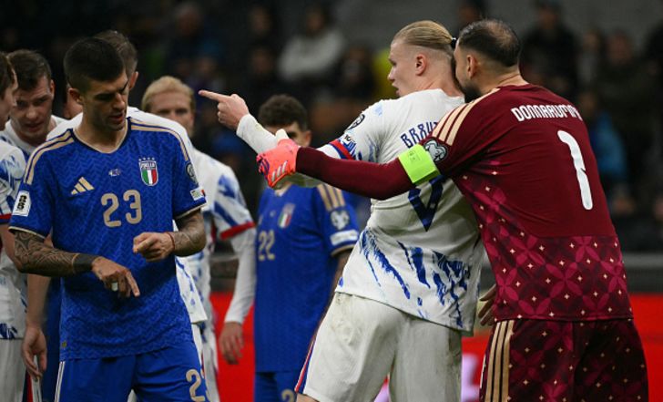 ארלינג הולאנד הוביל את נורבגיה לניצחון מרשים 1:4 על איטליה בסן סירו, כשכבש שני שערים תוך שתי דקות בלבד והבטיח לנבחרתו העפלה מושלמת לגביע העולם לראשונה מזה 28 שנה. במהלך החצי הראשון של המשחק, הולאנד שהיה מתוסכל מההגנה האיטלקית התעמת עם ג'יאנלוקה מנצ'יני עד כדי כך שחברו לקבוצה, דונארומה, נאלץ להתערב ולהחזיק אותו.