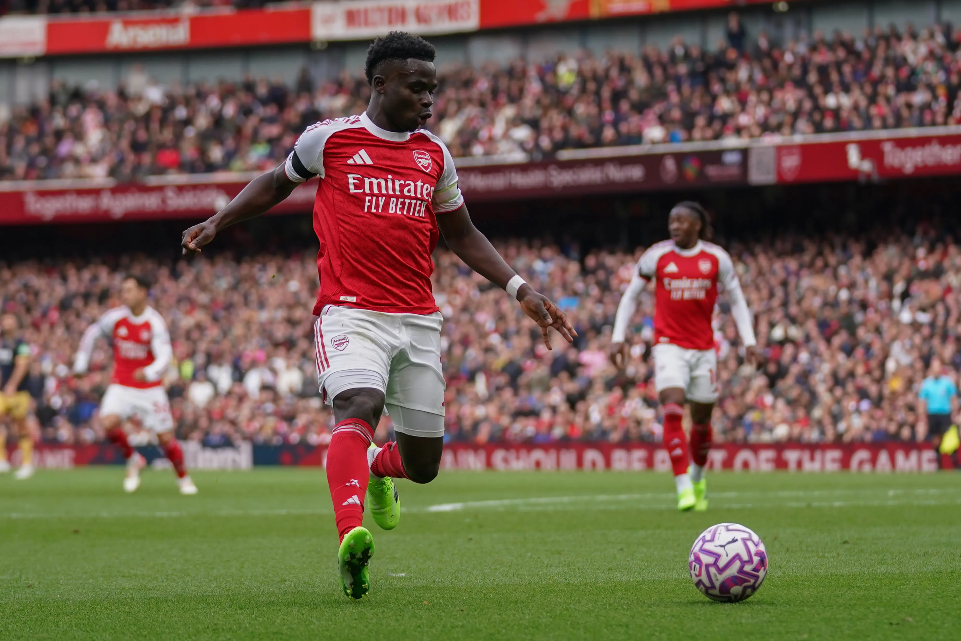 סאקה כבר הבקיע העונה שבעה שערים ב-33 הופעות, לאחר שעלה לראשונה לקבוצה הבוגרת בגיל 17 ב-2018, כשהוא גדל במחלקת הנוער של המועדון. לאורך הקריירה בפרמיירליג הוא רשם 217 הופעות והבקיע 57 שערים. הוא רחוק ב-116 הופעות מהשיא של ריי פארלור (333 הופעות) ויהיה במועדון 13 שנים כשחוזהו החדש יסתיים ב-2031.