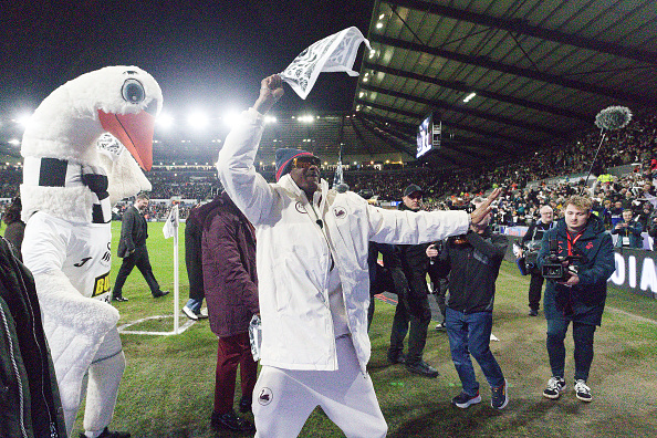כוכב הראפ האמריקאי, שרכש נתח מיעוט במועדון הוולשי ביולי שעבר, הגיע לביקורו הראשון באצטדיון "Swansea.com", ומשך קהל שיא. לפני המשחק ערך סיור של שבע דקות על המגרש לצהלות האוהדים, שנופפו במגבות לבנות עליהן הודפסו פניו והכיתוב "make some noise".