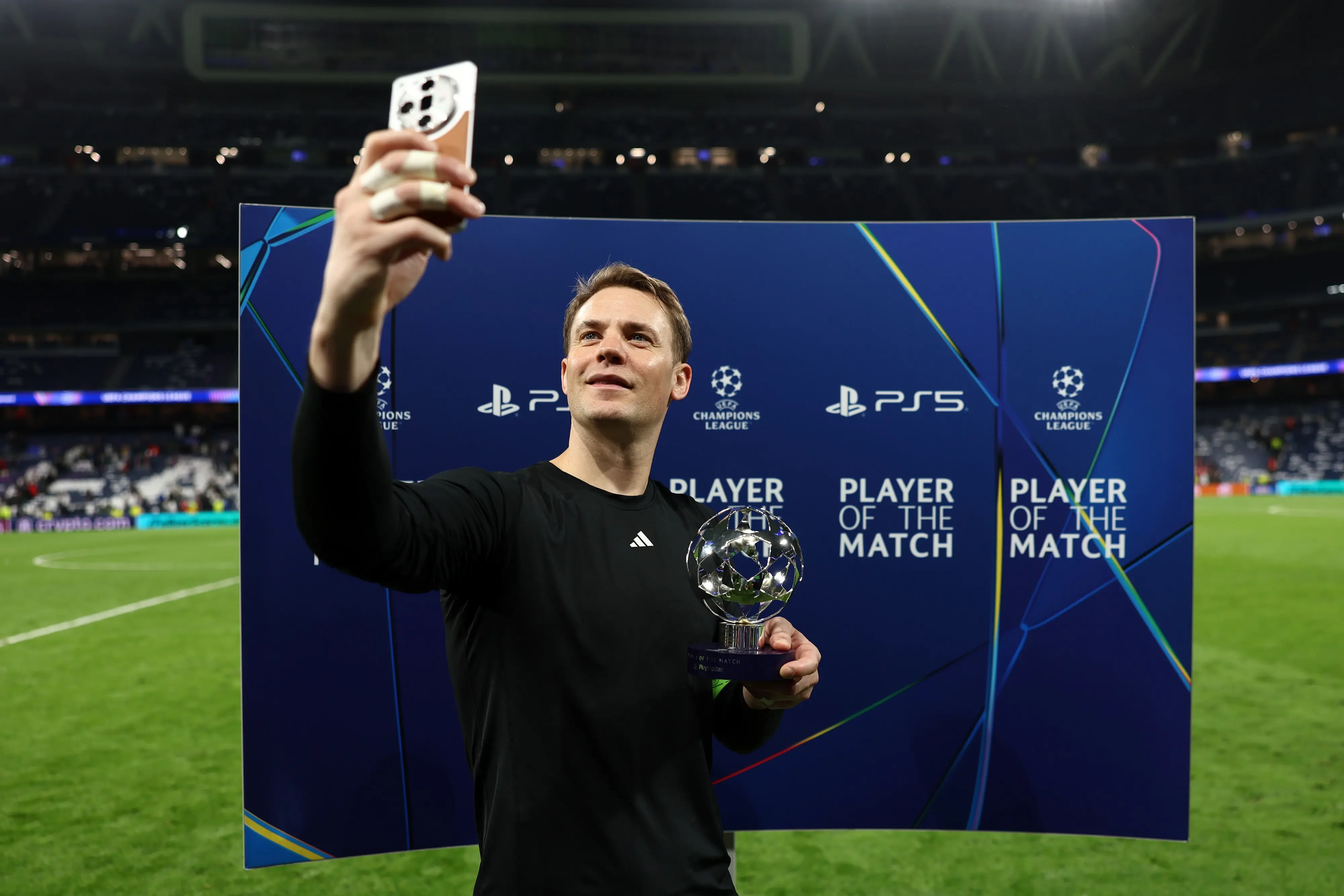 מנואל נוייר שוער באיירן מינכן עם פרס איש המשחק | אימג'בנק GettyImages, Fran Santiago – UEFA