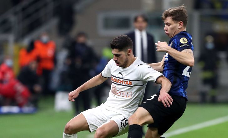 שחקן שחטאר דונייצק מנור סולומון עם מול שחקן אינטר ניקולו בארלה