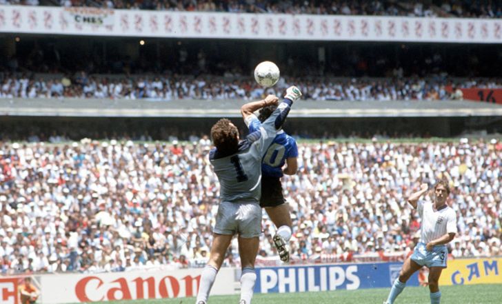 דייגו מראדונה כובש את שער 'יד האלוהים' | Bob Thomas Sports Photography via Getty Images