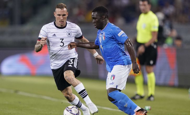 רוברטו מאנצ'יני ביצע מהפכה בהרכב לאחר התבוסה 3:0 לארגנטינה ביום רביעי האחרון, והשאיר רק את השוער ג'יאנלואיג'י דונארומה. אלופת אירופה אמנם התאוששה מאותו הפסד, אך המשיכה להציג יכולת פושרת. את הסיפור המרכזי של הערב סיפק ווילי ניונטו בן ה-18, שהפך ליליד 2003 הראשון שמשחק בנבחרת איטליה הבוגרת אחרי שעלה מהספסל במחצית השנייה, וגם בישל את שער היתרון של האזורי ללורנצו פלגריני. עם זאת, תוך שלוש דקות הגיע השוויון של יוזואה קימיש, שהציל את גרמניה מהפסד במשחק שמשאיר המון חומר למחשבה למאמן האנזי פליק, לאור העובדה שהמאנשאפט לא הצליחו להכניע יריבה אפורה למדי אפילו שעלו בהרכב התקפי במיוחד.