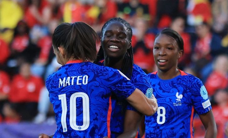 הצרפתיות הבטיחו את המקום שלהן ברבע הגמר ואף את המקום הראשון בבית ד'. קדידיאטו דיאני מפריז סן ז'רמן כבש את השער הראשון בדקה השישית. ז'ניס קיימן, גם היא מפ.ס.ז', הצליחה לאזן בדקה ה-36, אבל גרידז'ה אמבוק סידרה לצרפת יתרון לפני המחצית (41). הכחולות היו יכולות להכריע את המשחק בדקה ה-90, אבל וונדי רנאר בעטה פנדל רע ונבלמה על ידי השוערת ואז בעטה ברשלנות את הריבאונד החוצה. אמבר טיסיאק סיימה את המשחק עם נגיעת יד ברחבה שהובילה לפנדל הזה אחרי שספגה צהוב שני.