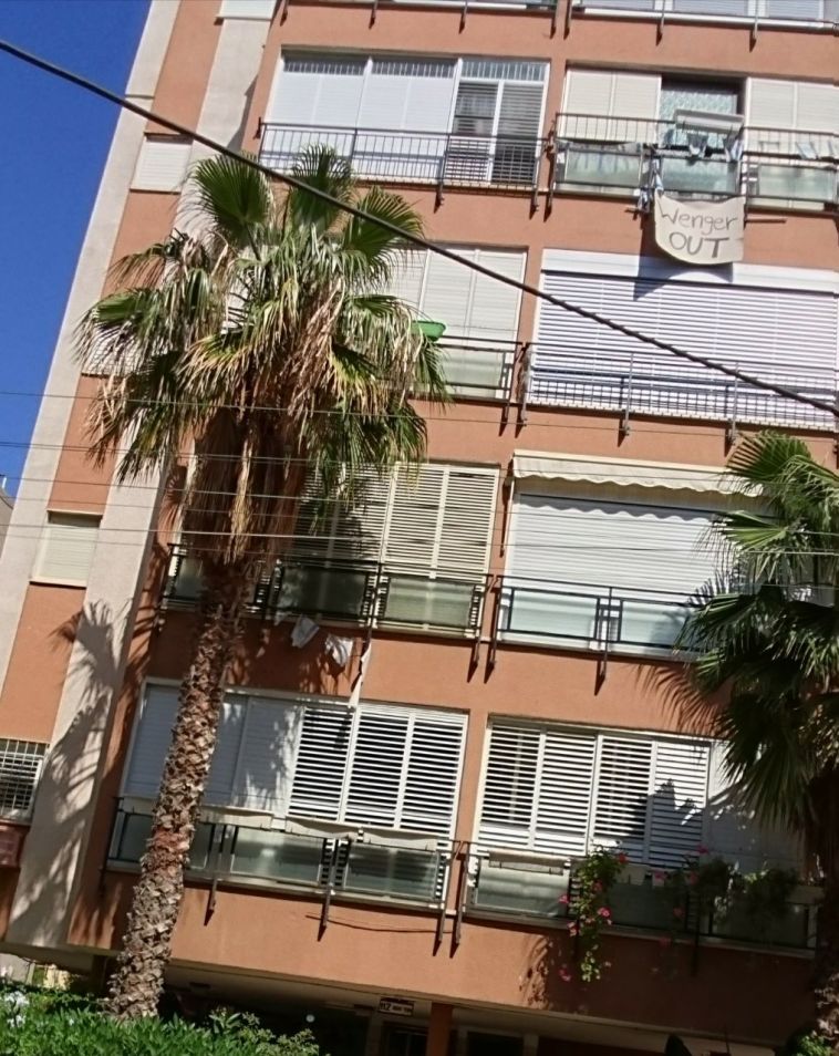 במחאת "Wenger Out" של אוהדי ארסנל, הקוראים מזה זמן רב להיפרד מהמנג'ר לאחר 21 שנה בתפקיד, קשה שלא להיתקל אם אתה מתגורר בלונדון. כעת גם ברחוב "אחד העם" בתל אביב ניתן לראות את המחאה בעיצומה